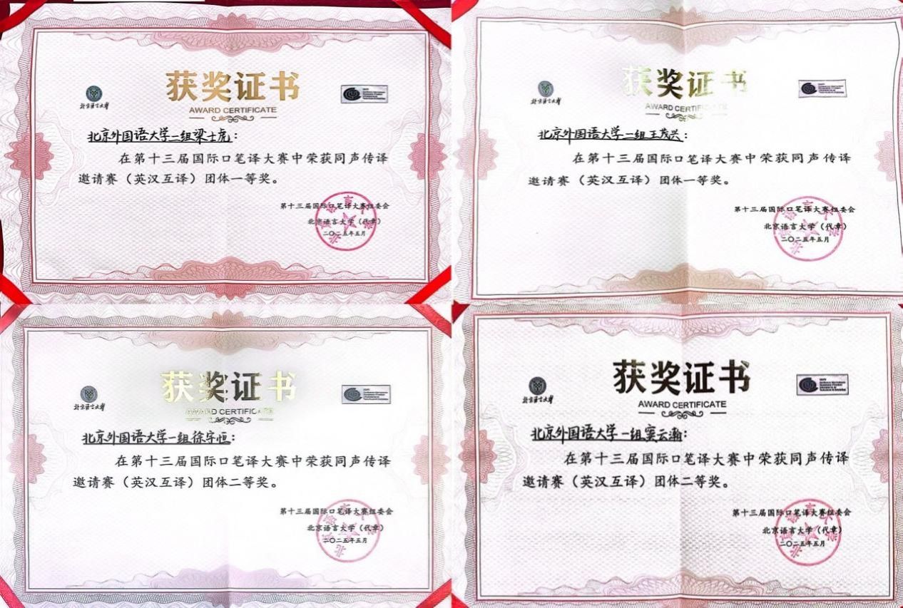2025年5月24日,第十三届国际口笔译大赛同声传译邀请赛(英汉互译)决赛圆满完赛。鸭脖官网四名学生包揽团体冠亚军、个人冠季军,荣获一、二、三等奖。梁士虎(右)和王茂兴(左)同学荣获团体一等奖(冠军)徐宇恒(右一)和窦云瀚(右二)同学荣获团体二等奖(亚军)大赛由国际大学翻译学院联合会(CIUTI)、国际会议口译员协会(AIIC)和中国翻译协会(TAC)口译专业委员会支持,北京语言大学主办。本届大赛的主题为“人工智能与世界”...