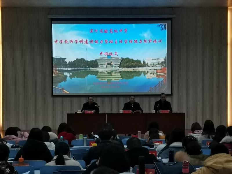 12月7日上午,漯河市实验高级中学教师学科建设能力暨班主任管理能力提升培训开班仪式在威尼斯官网举行。漯河市实验高级中学党委书记、校长游建德,威尼斯官网党总支书记周涛,副院长邓觅成和90名参训教师参加了开班仪式。仪式由邓觅成主持。