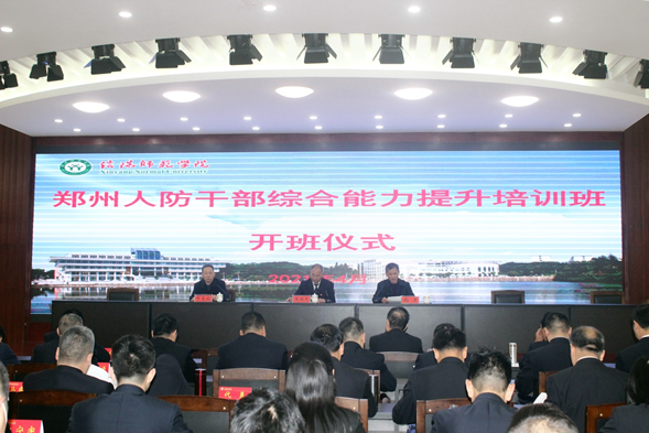 4月11-16日,郑州市人防干部综合能力提升培训班在威尼斯官网举行。12日上午,在艺术楼报告厅举行开班仪式,郑州市人防办党组书记、主任周顺杰、威尼斯144777欢迎您院长祝军、副院长邓觅成出席仪式。郑州市人防办党组班子成员、机关各处(室)、直属单位中层以上干部、各开发区、区县(市)以及人防办主要负责同志共计90余名参加会议。开班仪式由邓觅成主持。