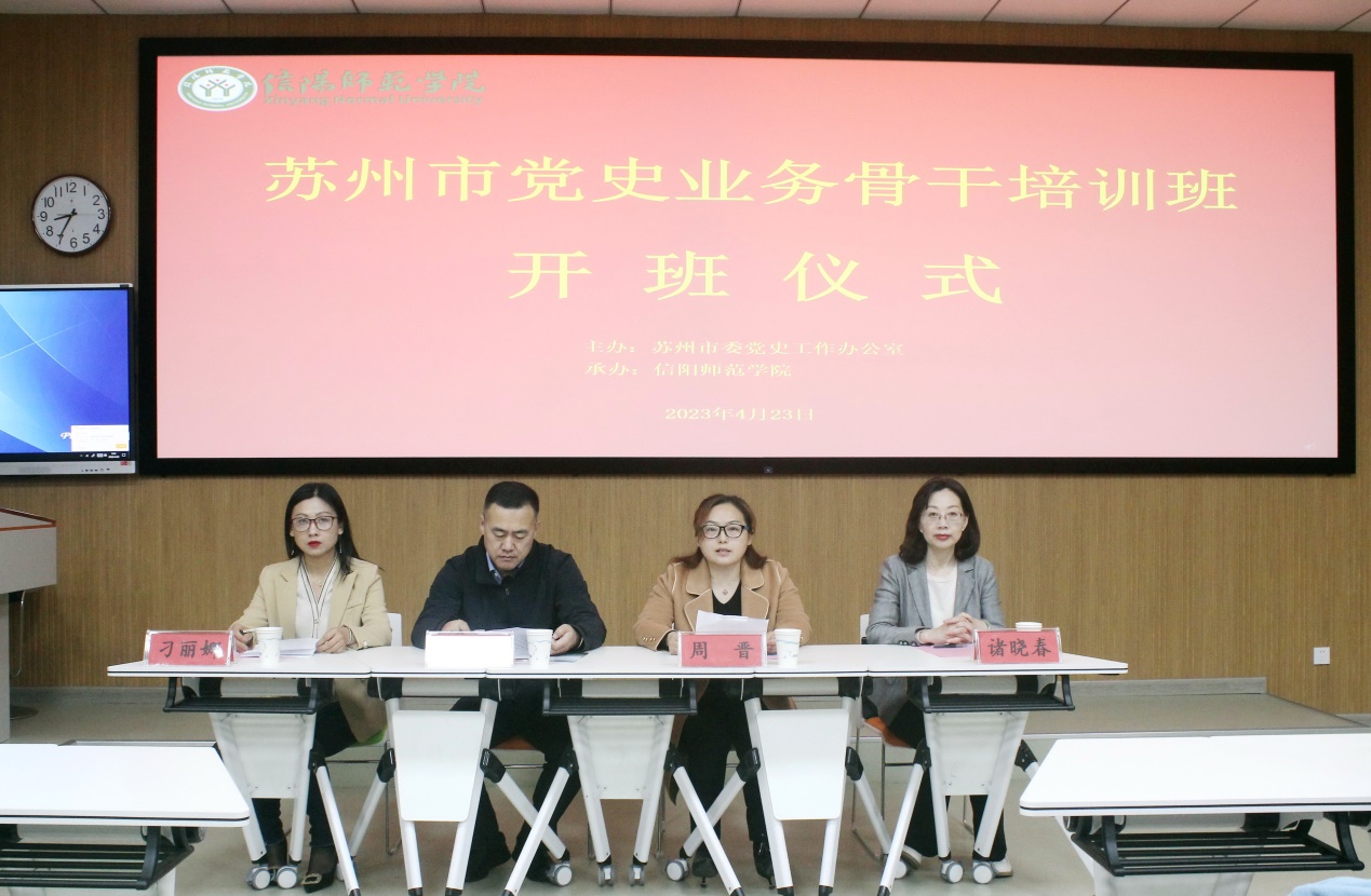 周晋热烈祝贺培训班开班,并简要介绍了我校基本情况、办学历史和发展现状。她指出,苏州是长江三角洲地区重要的中心城市之一,经济社会文化发达,也是国家支持东部地区与革命老区信阳对口合作城市,两地拥有良好的合作基础和前景。此次苏州党史业务骨干培训班来校开展培训,既是增进苏信交流的重要契机,也是苏信合作走深走实的具体实践。希望通过本次培训,两地能够更好地发挥各自资源和特色优势,共同推动教育培训事业高质量发展。