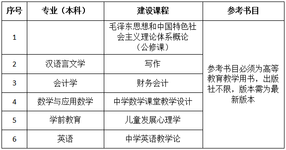 拟建设在线开放课程详情如下: