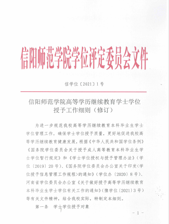 信阳师范学院高等学历继续教育学士学位授予工作细则(修订)