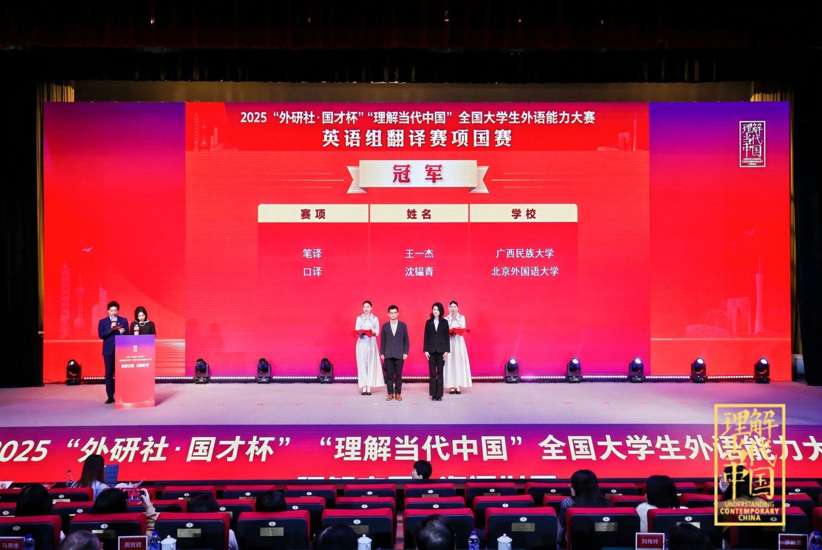 2025“外研社·国才杯”“理解当代中国”全国大学生外语能力大赛英语组口译赛项历经校赛、省赛、国赛三个赛段,189名选手晋级全国总决赛。在12月6日举行的国赛第三阶段比赛中,10位选手分别为中外对话嘉宾进行汉英、英汉交替传译,全面展示口译水平、知识储备、信息处理、短时记忆与临场应变等综合能力。对话内容广泛、主题多元,紧扣当代中国发展实践,聚焦时代命题,覆盖科技前沿与文化热点,既包含人形机器人等重大成果,也融入游戏IP等轻松议题。两位中外嘉宾风趣幽默、旁征博引,采用专业术语、数字数据、网络热词和文化典故等多元语料,选手们准确传递信息、传达意义,展现出扎实的知识储备与娴熟的专业表达能力,充分展现了当代青年卓越的译员素养。