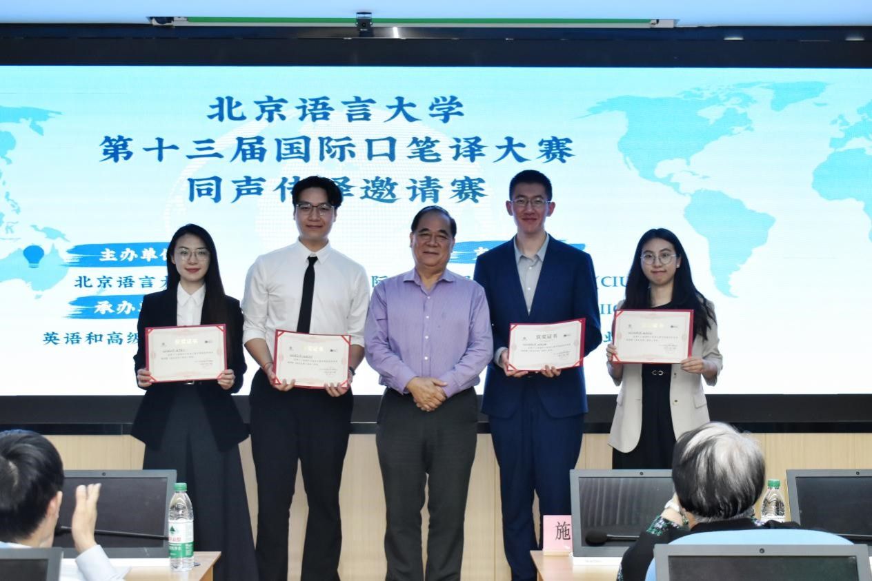 2025年5月24日,第十三届国际口笔译大赛同声传译邀请赛(英汉互译)决赛圆满完赛。鸭脖官网四名学生包揽团体冠亚军、个人冠季军,荣获一、二、三等奖。