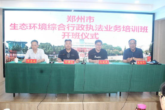 7月20日,郑州市生态环境综合行政执法业务培训班开班仪式在威尼斯官网举行。郑州市生态环境综合行政执法支队党委副书记郑砺刚、副支队长张绍军、威尼斯144777欢迎您党总支副书记马建民、副院长邓觅成及全体参训学员出席了开班仪式。开班仪式由张绍军主持。