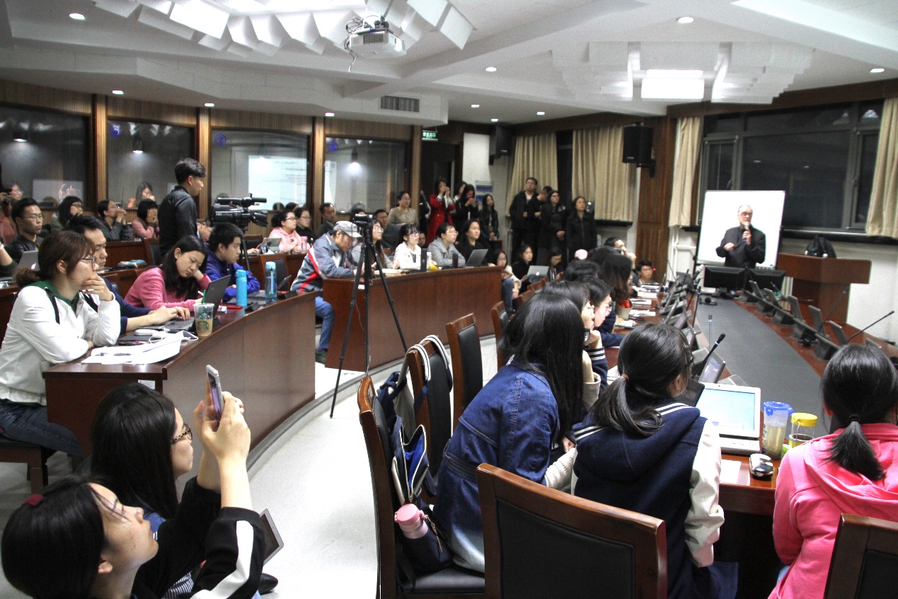 讲座结束后,依然有许多听众留下与弗格森继续交流。姚斌老师表示有机会将再次邀请弗格森先生来高翻学院举办讲座,讲座在愉快的氛围中结束。