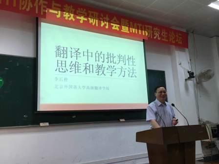 广西译协首届MTI协作与教学研讨会暨MTI研究生论坛于6月18日在广西大学外语学院举行。鸭脖官网李长栓教授作为特邀嘉宾参会,并作题为“翻译中的批判性思维与教学方法”的发言。