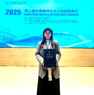 鸭脖官网始终注重翻译技术与语言服务的融合创新,积极鼓励学生参与高水平专业赛事,以赛促学、以学促用。肖薇同学的优异表现,充分体现了学院在培养高素质、复合型翻译人才方面的成果。未来,学院将继续支持学生在技术赋能的环境中拓展国际视野、提升实践能力,为讲好中国故事、推动中外交流作出更大贡献。