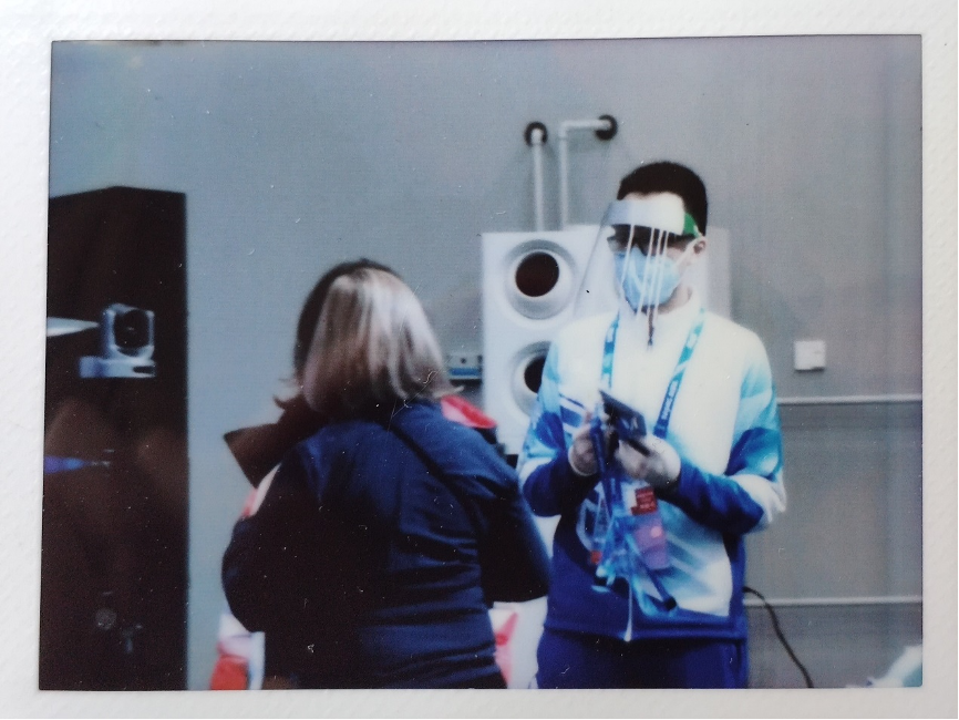 开幕式当天下午是首体的首场发布会。虽然事先已经进行过推演,但当发布厅大门打开时我才发现这份工作比想象的复杂得多:如何辨别谁需要耳机,谁不需要耳机?如何通过一双眼睛确定沟通语言,如何让记者从围巾帽子耳机线和冰墩墩挂饰中将注册卡剥离出来?这些问题都是我起先没有想到的。发耳机这件与同传如影随形的工作竟也暗藏玄机。
