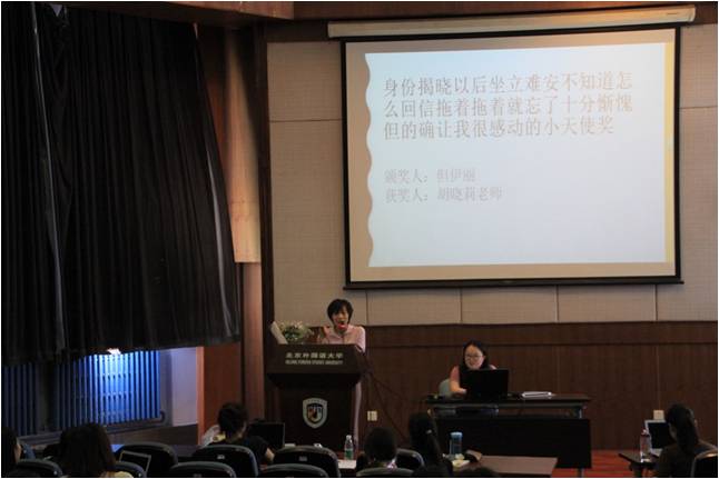 “天使在身边”是YABO鸭脖官网的特色活动。该活动通过随机配对的方式,在互不认识的参与者之间建立相互关心的关系。每个人既是“小天使”,又是“小主人”,赠与他人温暖的同事,也收到来自他人的惊喜。2017年“天使在身边”活动自17年10月开幕以来,得到了学院师生的热情响应,在过去半年多时间成功营造了互相关爱的大家庭气氛。而半年多的默默付出和惊喜收获之后,同学和老师们也极其期待揭晓神秘小天使的身份。因此,北外高翻研会生活部在2017-2018学年即将结束之际举办了本届“天使在身边”活动的闭幕式。