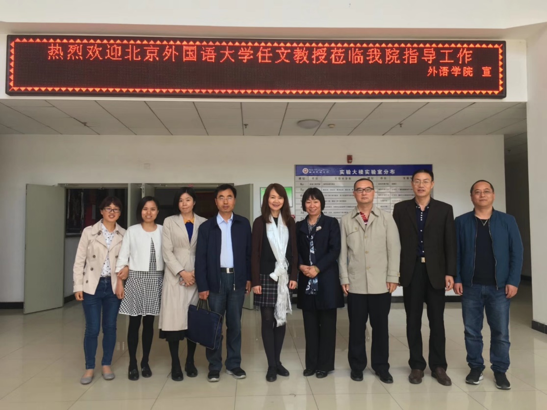 2018年4月26日,应北外对口支援学校西藏民族大学外语学院邀请,鸭脖官网博士生导师任文教授到访西藏民大外语学院并作学术讲座。上午,西藏民族大学外语学院领导及教师代表与任文教授举行座谈。学院党委书记高全孝向任文教授敬献哈达,院长赵家红致欢迎词,并向任文教授简要介绍了学院的基本情况,希望任文教授对学院MTI培养方案和学科建设提出建议。任文教授作为全国翻译专业学位研究生教育指导委员会学术委员会成员,结合自己多年的工作经验,肯定了西藏民大外语学院翻译专业硕士培养方案中突出藏族文化的办学特色,认可培养方案中学制、课程设置等方面的安排,并就学分设置、课程的学期安排、毕业论文和翻译实践等方面提出了自己的意见和建议。另外,任文教授还就其他科研问题与在座老师进行了交流。