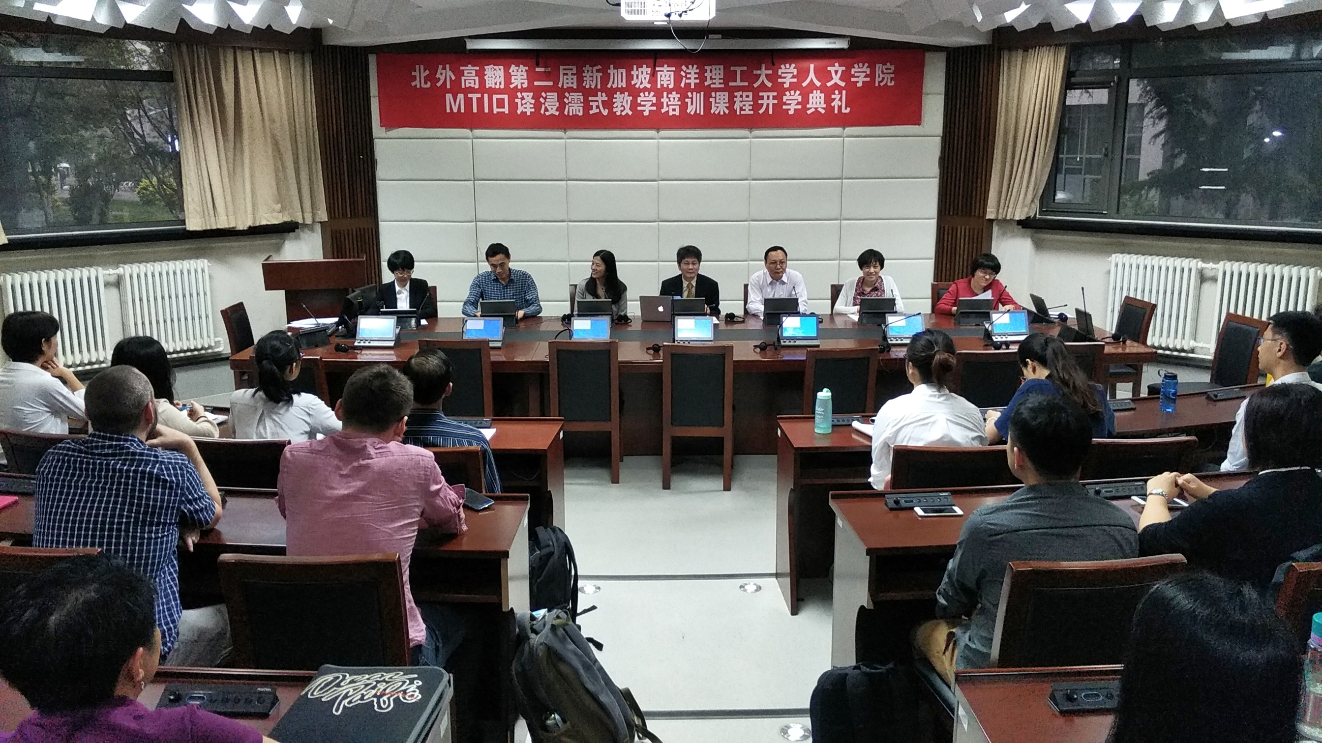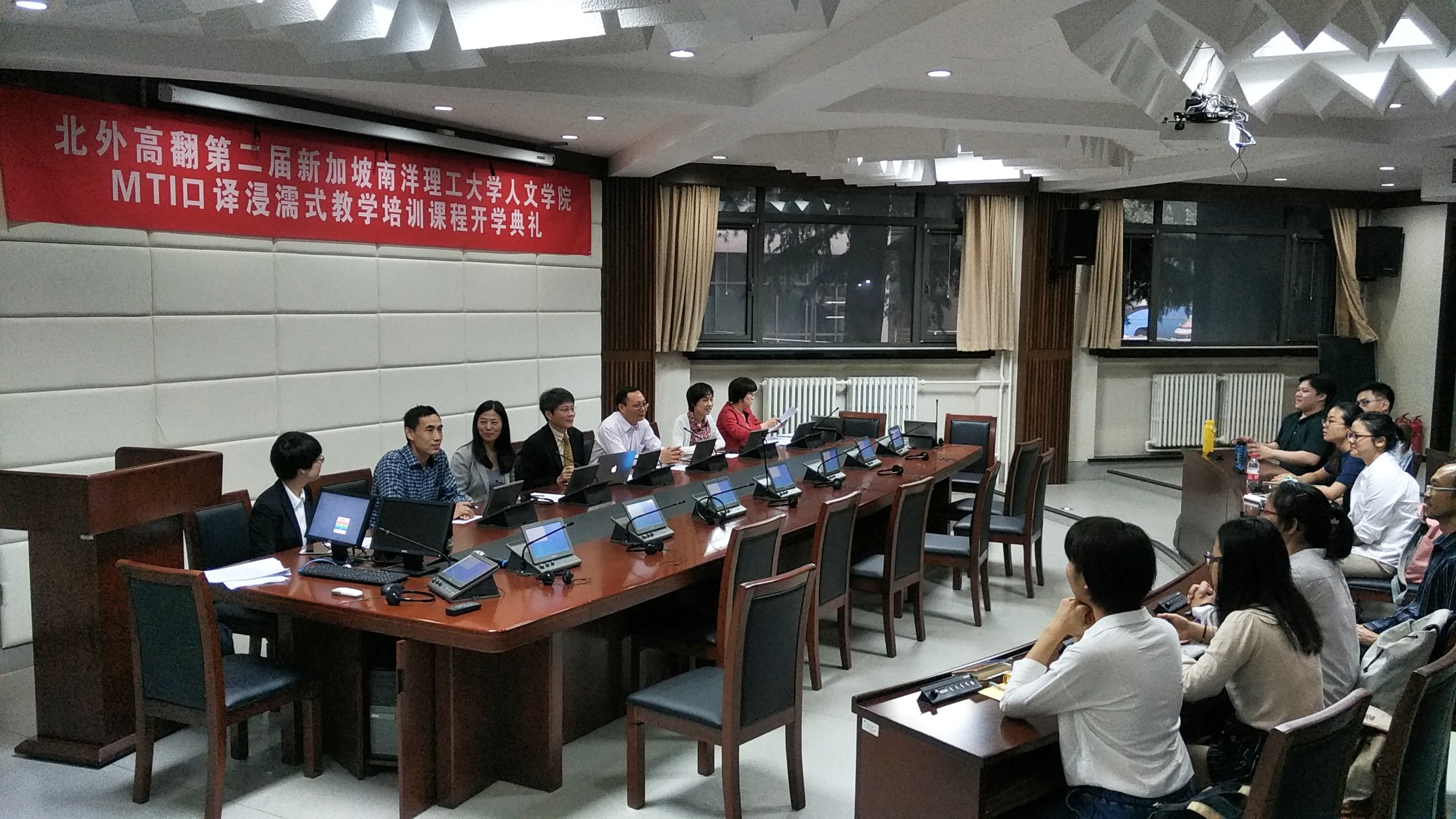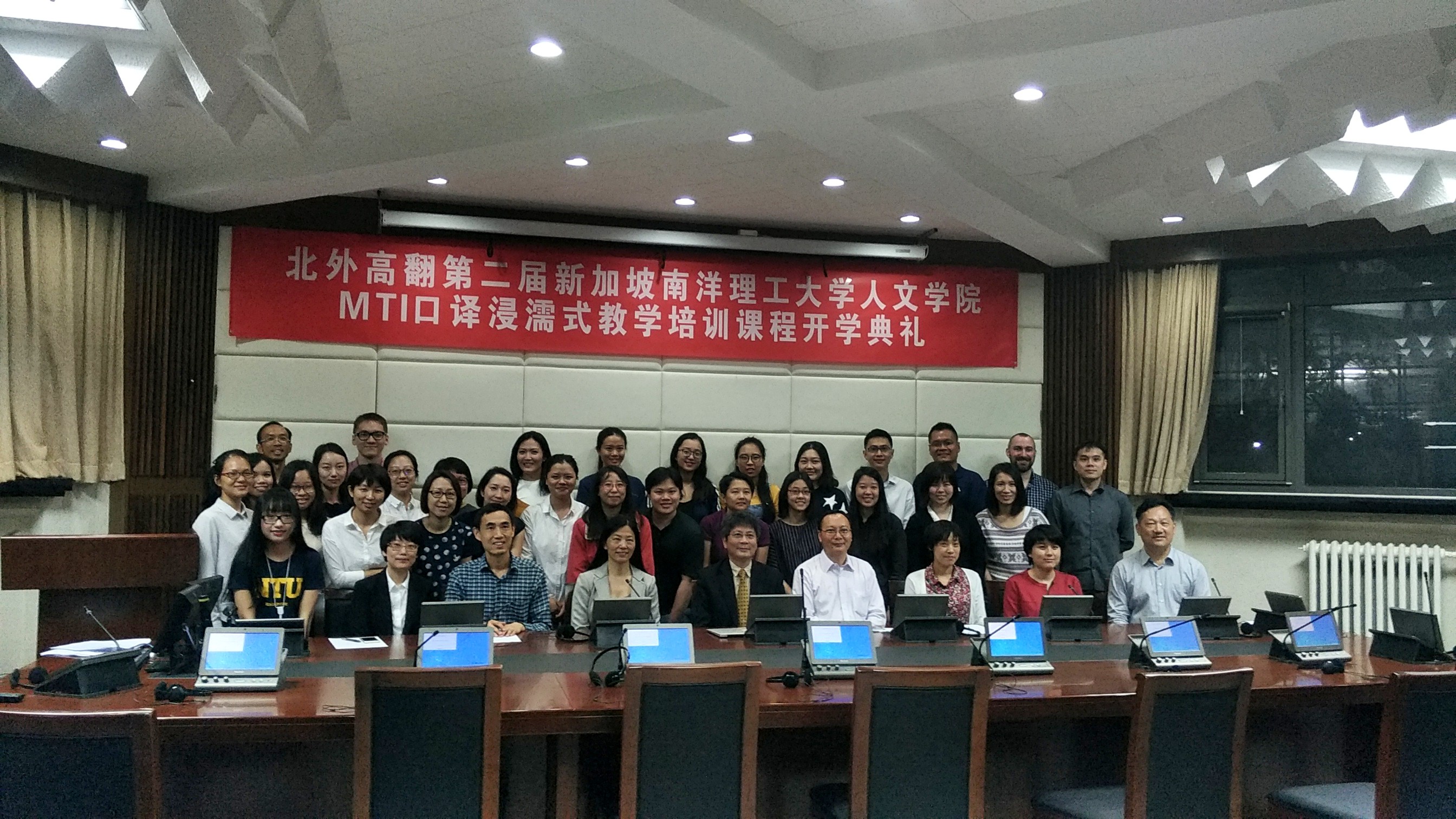 2017年5月22日,北外高翻第二届新加坡南洋理工大学人文学院MTI口译浸濡式教学培训课程正式开课。开课前,举办了隆重的开学典礼,新加坡南洋理工大学人文学院院长陆镜光、高虹博士和卞蕾老师;YABO鸭脖官网胡晓莉书记、李长栓和姚斌副院长参加了开学典礼。