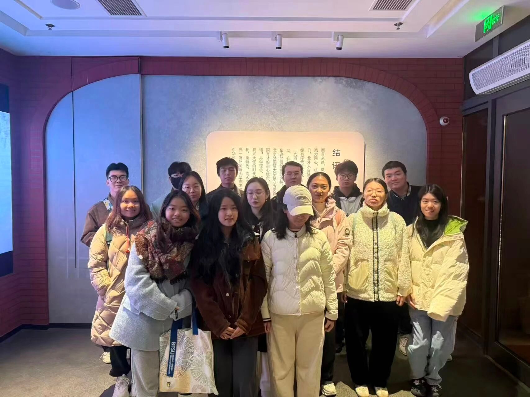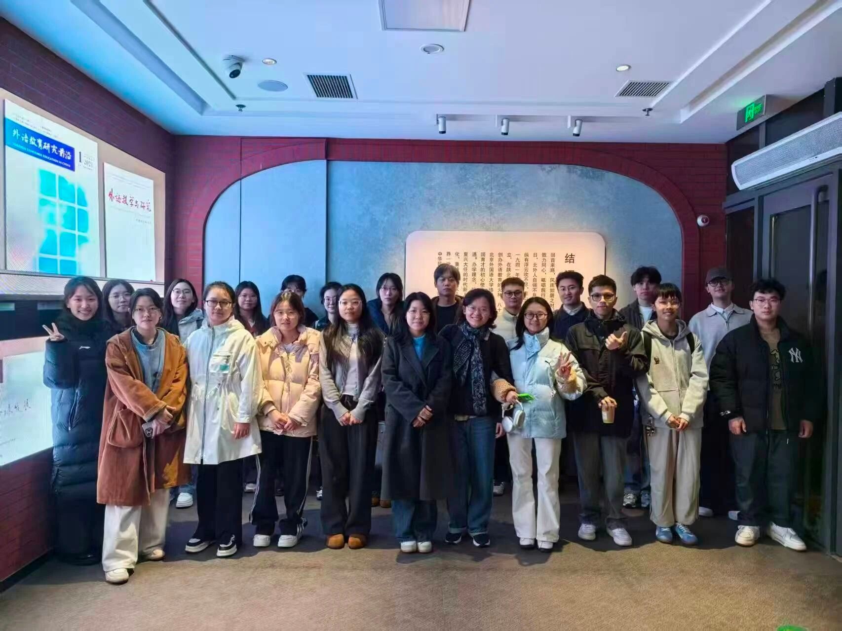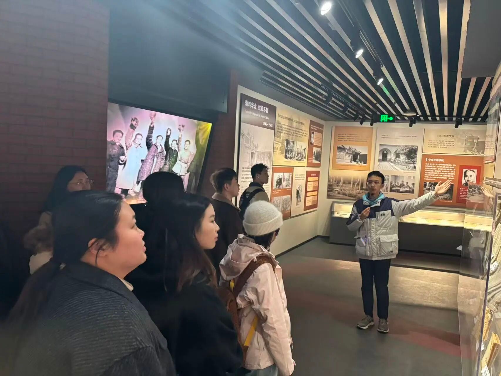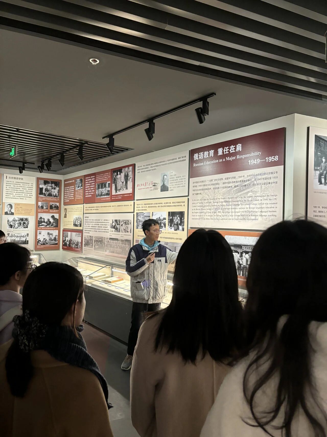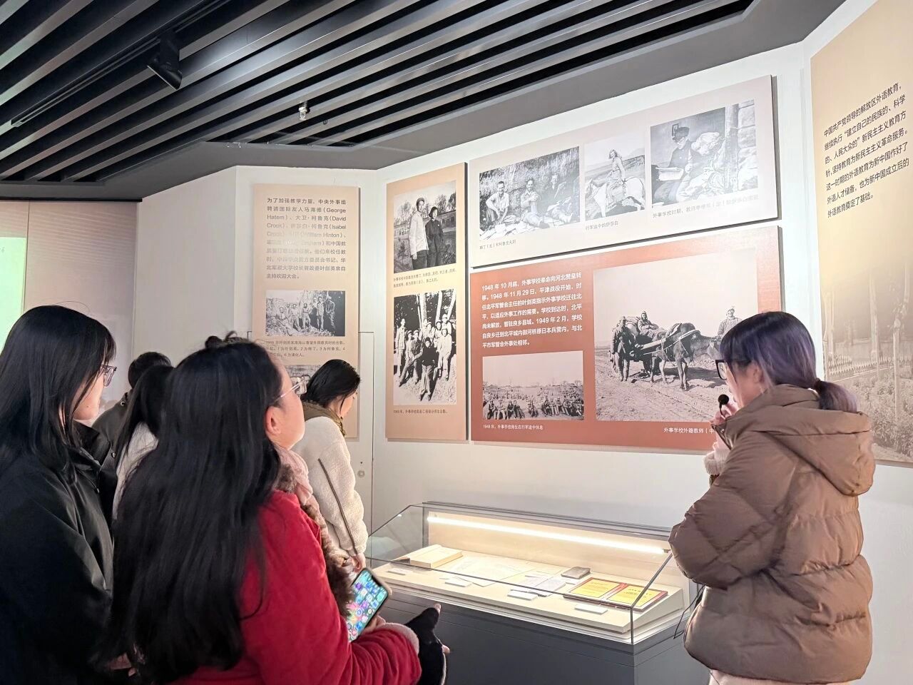 随着讲解深入,一代代北外人的奋斗足迹愈发清晰。从黑白照片中前辈们坚定的目光,到泛黄教材上密密麻麻的批注;从Follow Me开创性的教学影像,到今日智慧化的教学现场,每一件展品都在诉说着北外人对外语教育与文化交流的不懈追求。