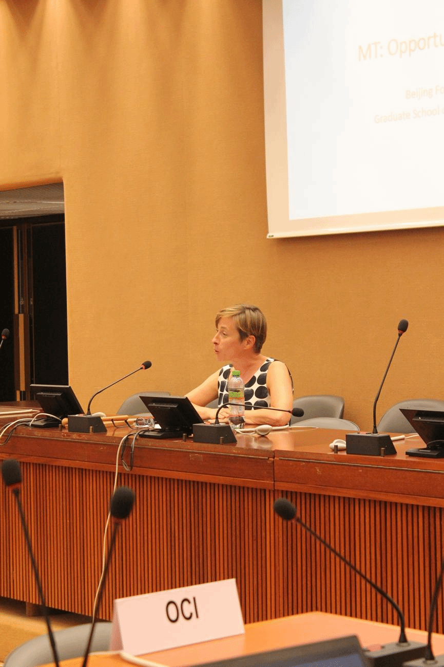 8月26日,李长栓教授作了题目为《机器翻译:机遇和问题》的报告。来自联合国日内瓦办事处、国际劳工组织、世界知识产权组织、世界卫生组织、世界气象组织、国际电信联盟等机构的专业译员共有60余人参加。讲座引起了各语种译员的强烈共鸣。