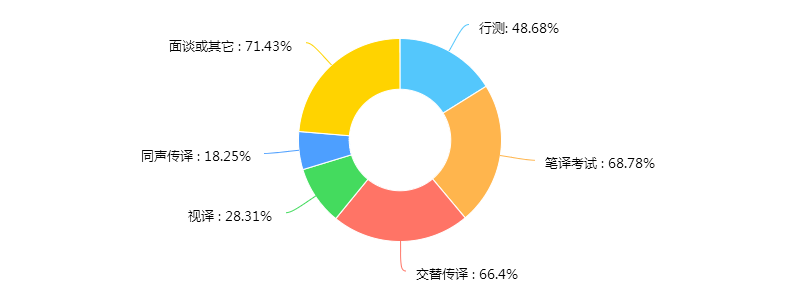 调查发现,三分之二的单位测试笔译和交替传译。考虑到有三分之一的毕业生并不从事翻译工作,可以推测,凡是工作岗位与翻译相关的,都要进行笔译和交传测试。视译和同传测试所占比例要低得多。可见,用人单位最大的需求还是笔译和交替传译。同时也可以看出,用人单位并不因申请人所填报专业方向为“会议口译”或“同声传译”而不考查笔译。对于用人单位而言,翻译岗意味着求职人员要做各种形式的翻译。因此,即使专业方向为口译,也要把笔译学好(反之亦然)。否则面试都可能无法入围。