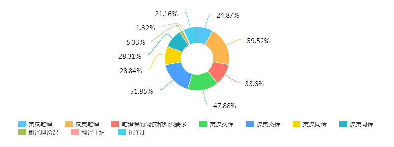 这个结果并不奇怪。一是因为现实中毕业生从事笔译和交传工作的比例更高,这些课当然被认为更有用。但这不能解释英汉笔译勾选较少的现象。英汉笔译勾选较少,原因是汉英和英汉笔译的教学模式和重点不同。汉英的实践性更强,以非文学为主,涉及各个专题,强调批判性思维、调查研究,要求学生以注释形式写出调查研究的过程,还有严格的格式要求,稍有不慎,作业就可能得零分;而英汉笔译较多使用文学作品做练习,偏重翻译理论的系统介绍,也没有汉英笔译那样的注释要求和格式要求(现在两门课已经统一为汉英的要求),因此,历届学生在两门课当中的体验不同。